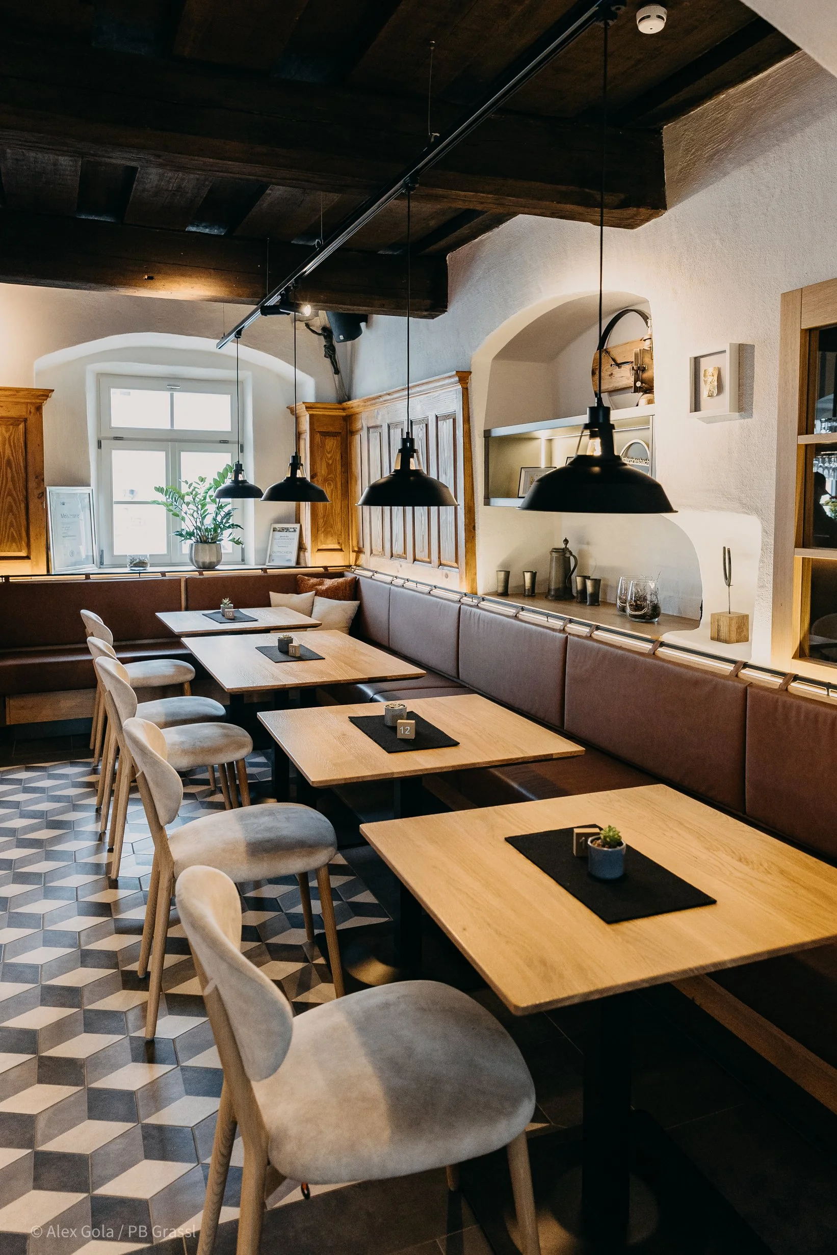 Ob im stilvollen Ambiente unserer historischen Räume oder im überdachten Gastgarten – wir schaffen den passenden Rahmen für unvergessliche Momente.